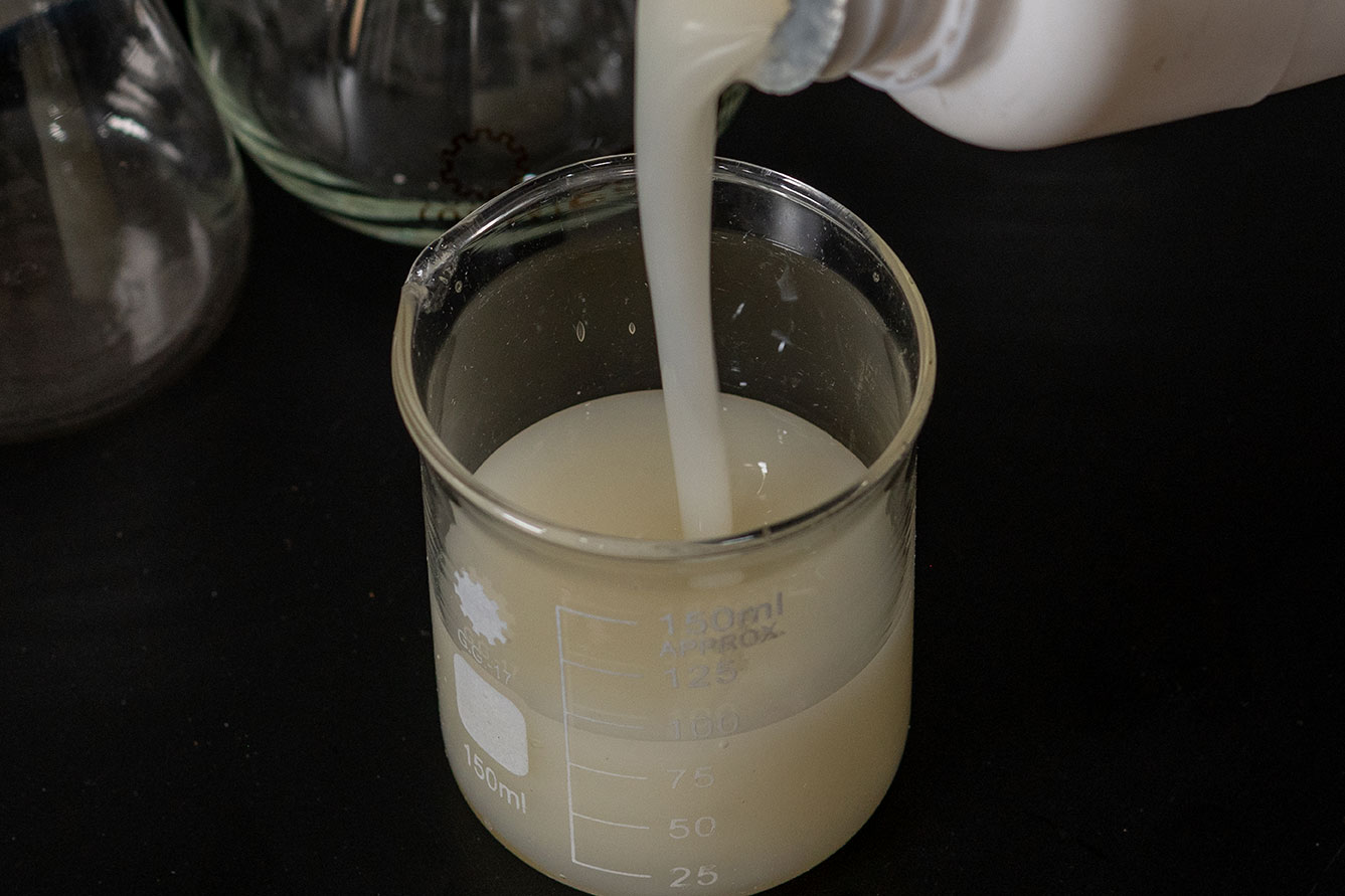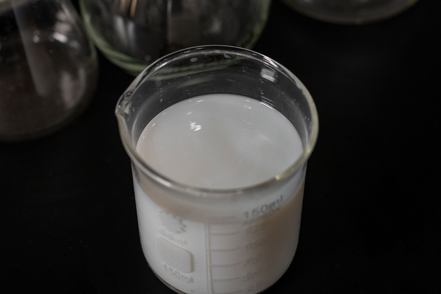 防水彈性乳液外觀為乳白色乳液狀,其主要成分為自交聯(lián)丙烯酸酯共聚型樹脂,屬于水性乳液,具有低粘度、高固含量的特點(diǎn)。